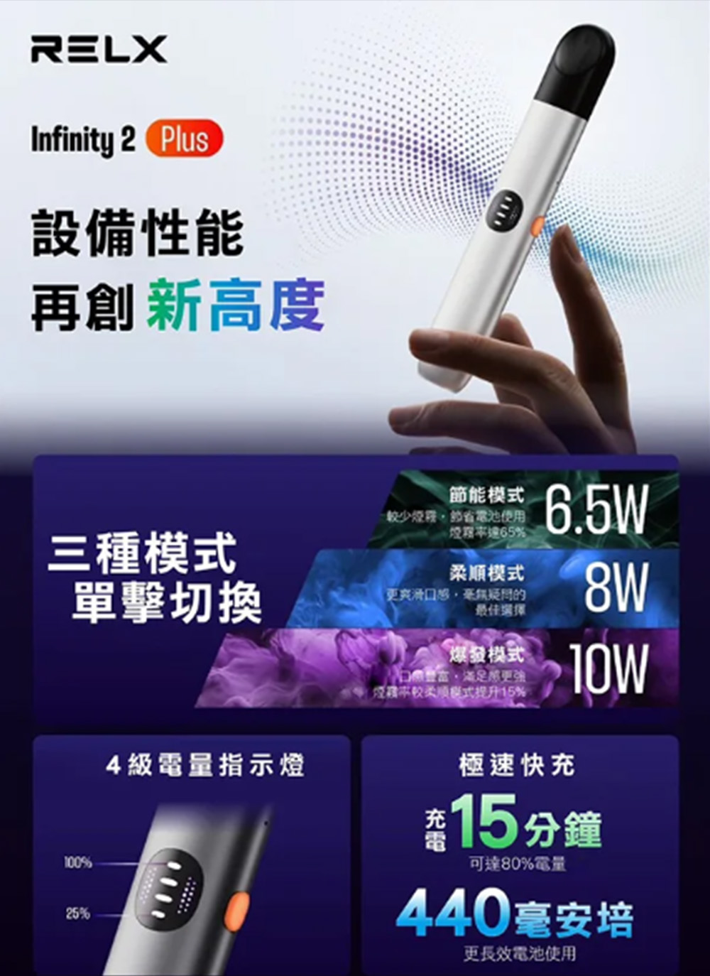Relx 6代主機relx infinity 2 pod system引以為傲的功能之一是其三種強勢功率模式,悅刻6代根據香港人的不同口味和需求而設計: